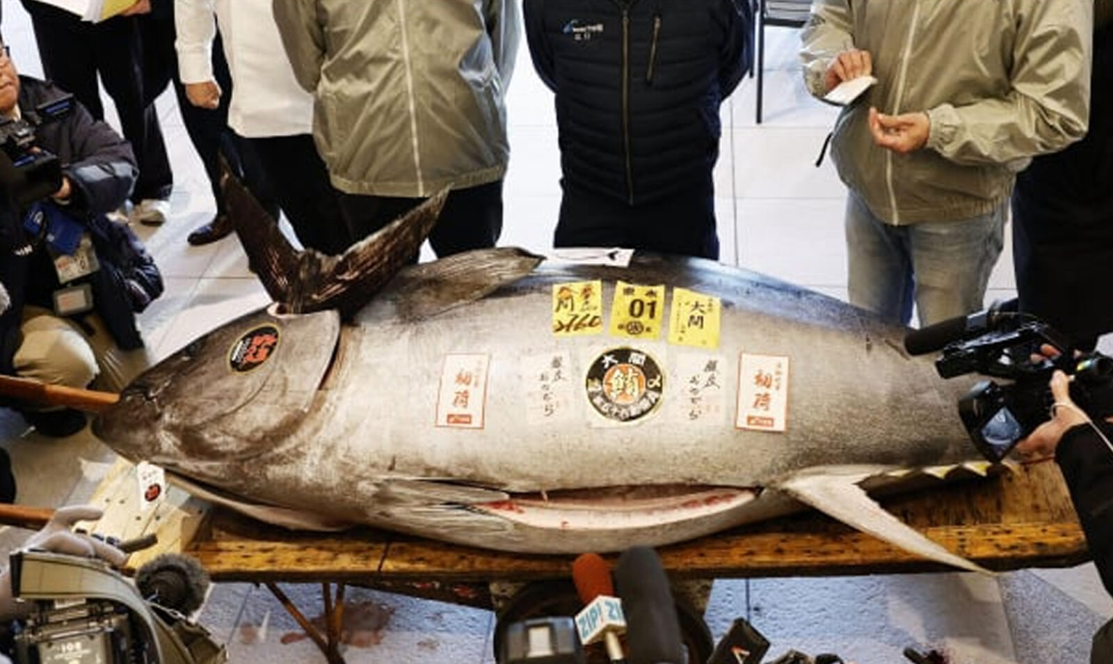 دارالحکومت ٹوکیو کی ٹویوسو فش مارکیٹ میں بیوپاریوں نے 20 کروڑ 7 لاکھ ین میں 276 کلو گرام بلیو فِن ٹونا خریدی۔