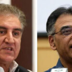 چیئر پی ٹی آئی پر عدالت میں جاتے ہوئے کسی نے پانی کی بوتل پھینک دی تاہم وہ پانی کی بوتل لگنے سے بچ گئے