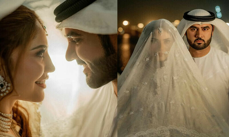 نکاح کی تصاویر میں نیلم منیر کو ان کے شوہر کے ہمراہ دبئی کے مختلف مقامات پر فوٹوشوٹ کرتے ہوئے دیکھا جا سکتا ہے، تصاویر کے بیک گراوٴنڈ میں دبئی کے مختلف مقامات نظر آرہے ہیں جن میں دنیا کی بلند ترین عمارت برج خلیفہ کو بھی دیکھا جا سکتا ہے۔