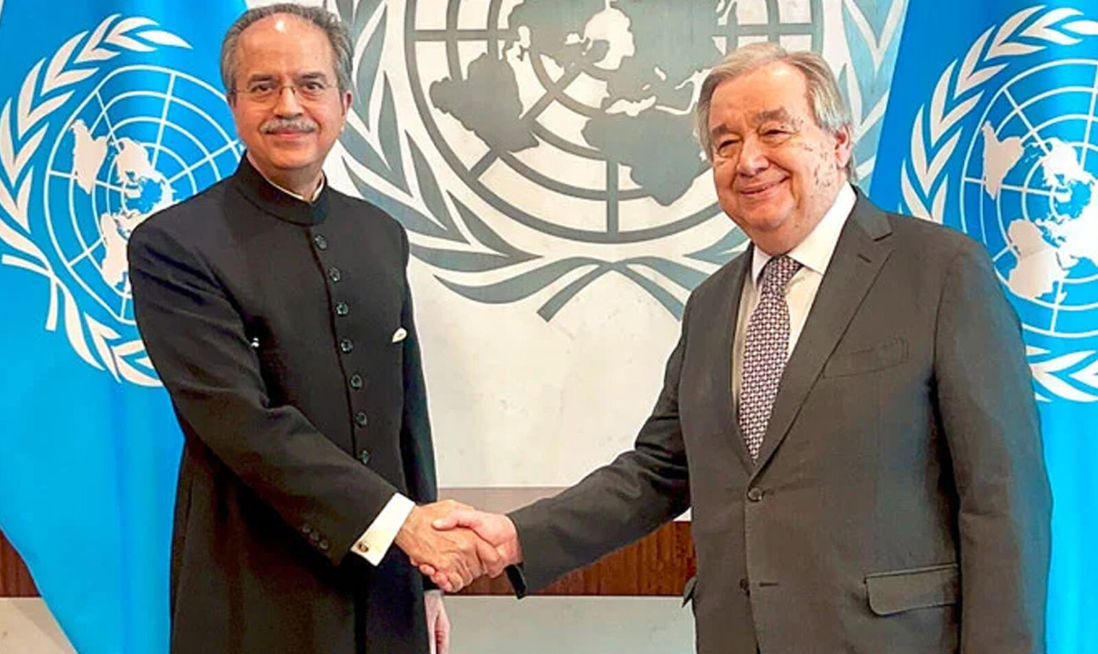 نیویارک: اقوام متحدہ میں پاکستان کے مستقل مندوب سفیر عاصم افتخار نے اقوام متحدہ کے سیکرٹری جنرل انتونیو گوتریس سے ملاقات کی ہے۔