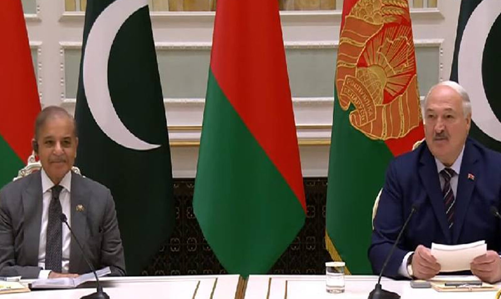 بیلاروس کے صدر الیگزینڈرلوکاشینکو کے ہمراہ مشترکہ پریس کانفرنس کرتے ہوئے وزیراعظم شہباز شریف کا کہنا تھا کہ بہترین میزبانی پر بیلاروس کی قیادت کا شکریہ ادا کرتا ہوں، منسک کی خوبصورتی کی جتنی تعریف کی جائے کم ہے، پاکستان اور بیلاروس کے درمیان دیرینہ تعلقات ہیں۔ صدر الیگزینڈر لوکاشینکو کے 2015 کے دورہ پاکستان نے دوستی کی مضبوطی میں اہم کردار ادا کیا۔