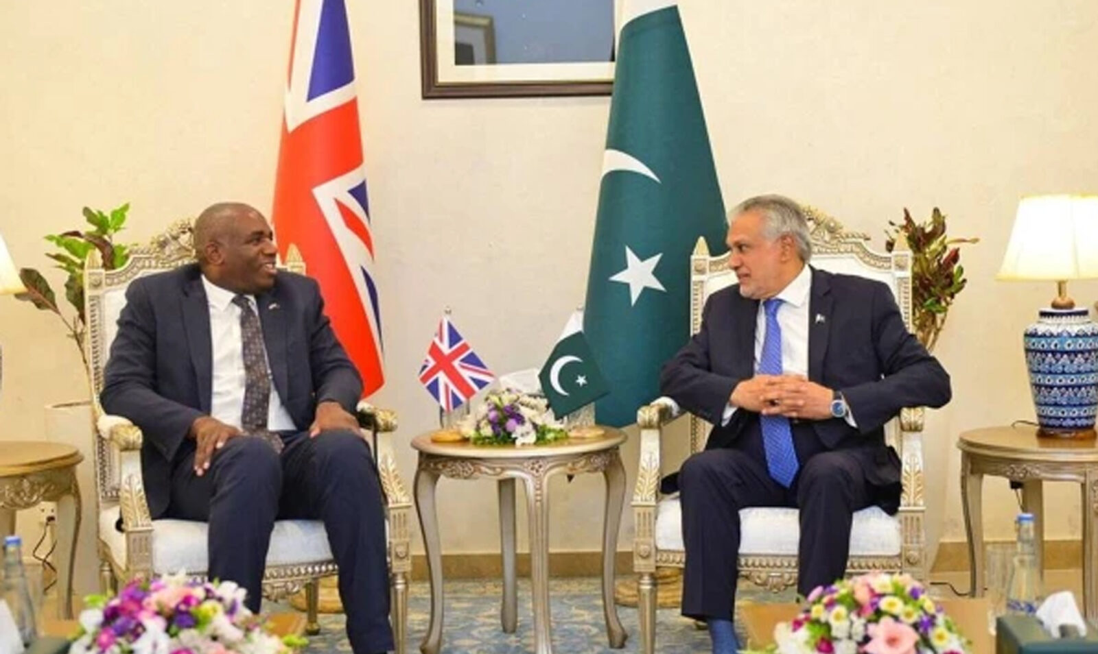 ترجمان دفتر خارجہ کے مطابق اسحاق ڈار نے برطانوی سیکرٹری خارجہ کا پاکستان کے پہلے سرکاری دورے پر پرتپاک استقبال کیا۔ دونوں رہنماؤں نے جنوبی ایشیا کی حالیہ صورتحال، بالخصوص پاک بھارت جنگ بندی پر تفصیلی بات چیت کی۔