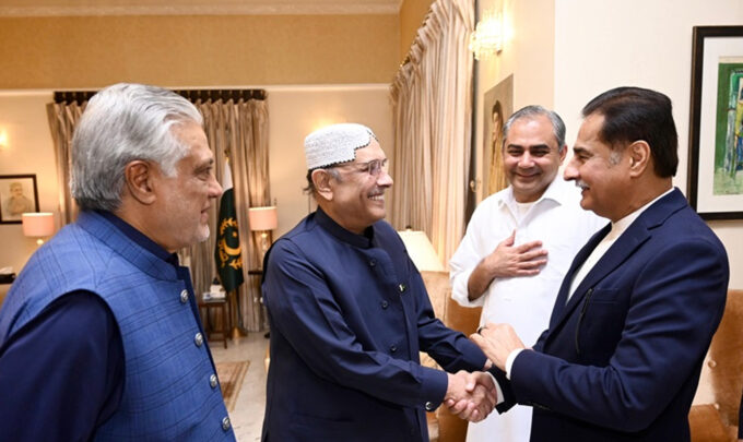 اسلام آباد:صدر آصف علی زرداری سے نائب وزیراعظم اسحاق ڈار اور اسپیکر قومی اسمبلی سردار ایاز صادق نے نواب شاہ میں اہم ملاقات...