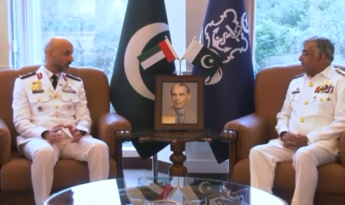 راولپنڈی: سربراہ پاک بحریہ ایڈمرل نوید اشرف سے کمانڈر متحدہ عرب امارات نیول فورسز میجر جنرل اسٹاف حمید محمد عبداللہ نے نیول ہیڈکوارٹرز...