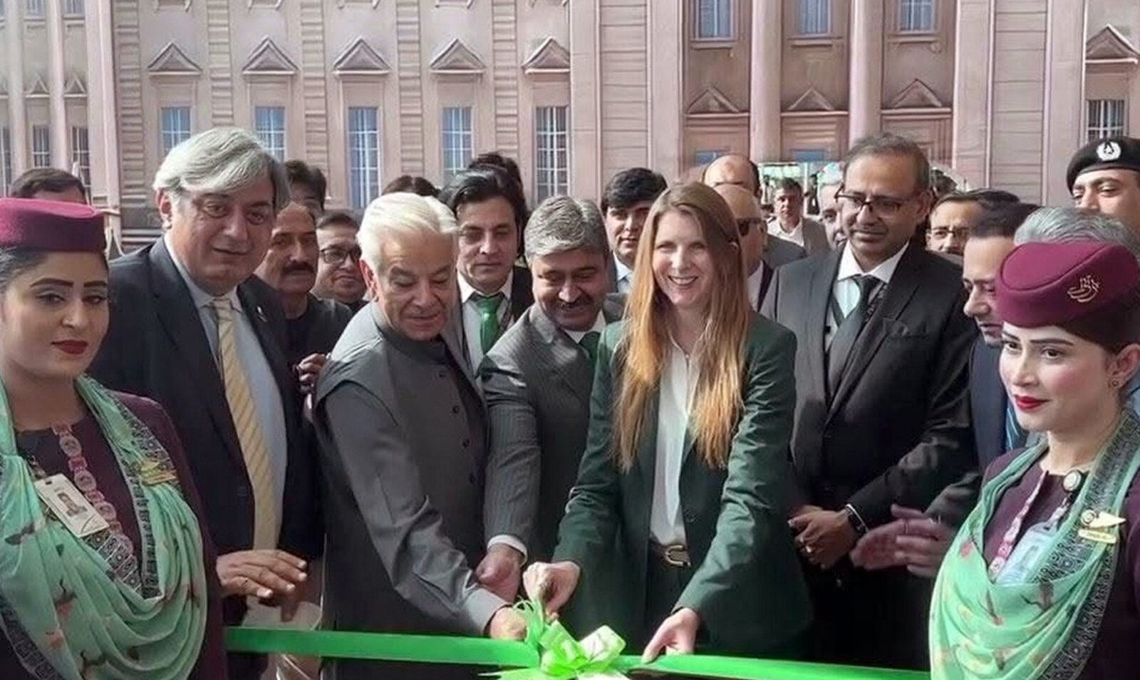 وزیرِ دفاع خواجہ آصف نے پی آئی اے کے برطانیہ فلائٹ آپریشن کی بحالی کا افتتاح کردیا، پہلی پرواز روانہ