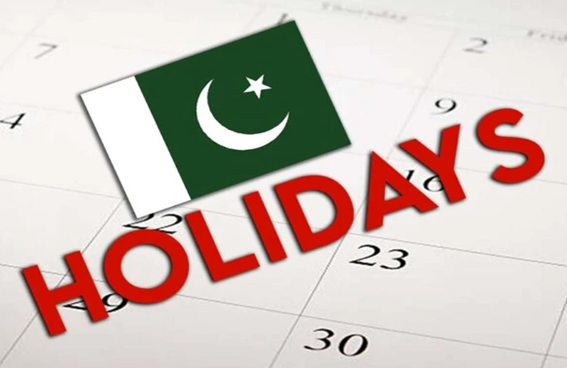 عید الفطر پر 21، 22 اور 23 مارچ، یکم مئی کو مزدوروں کے عالمی دن پر اور 28 مئی کو یوم تکبیر کے موقع پر عام تعطیل ہوگی۔