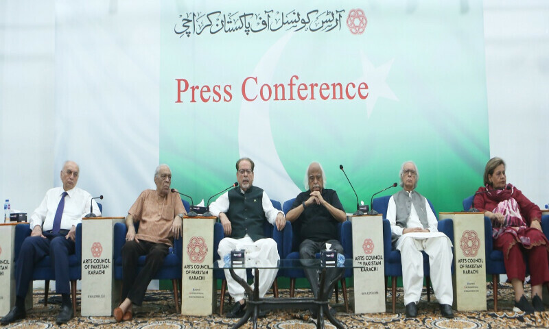 آرٹس کونسل کراچی میں کابینہ کے ہمراہ پریس کانفرنس کرتے ہوئے انور مقصود نے کہا کہ آج پچیس کروڑ لوگ سپاہی بن گئے ہیں، میرے پاس ہتھیار نہیں قلم کی طاقت ہے، میں اپنے پرچم کی اس طرح عزت کرتا ہوں جس طرح ہندوستان کرتا ہے۔