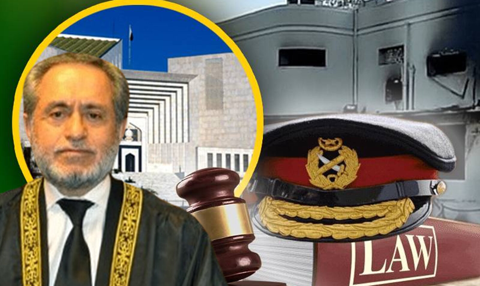 جسٹس محمد علی مظہر نے وکیل سے سوال کیا کہ برطانوی قانون تو اپنی فوج کے ڈسپلن سے متعلق ہے، موجودہ کیس میں تو جرم عام شہریوں نے کیا ہے، شہریوں پر کیسے لاگو ہو سکتا ہے؟