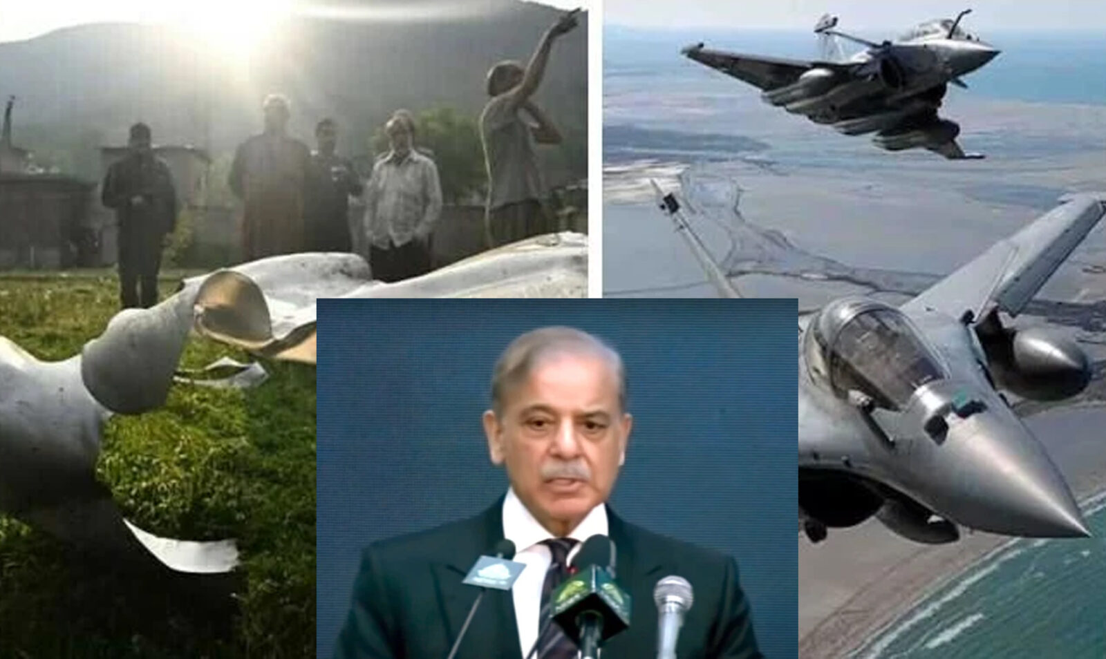 شہباز شریف نے پاک فضائیہ کے شاہینوں کو مخاطب کرکے کہا کہ آپ نے جے ایف 17 اور چینی ساختہ جہاز ہیں، اس کے ساتھ آپ نے رافیل کو نشانہ بنایا ہے اس قیامت تک مودی اور دنیا یاد رکھے گی۔