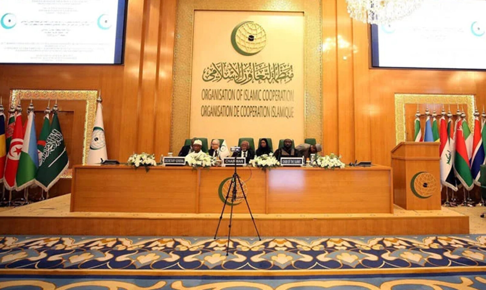 وزیرخارجہ اسحاق ڈار نے اسلامی تعاون تنظیم کے وزرائے خارجہ کے اجلاس میں گفتگو کرتے ہوئے کہا کہ اسرائیل فلسطینیوں پر مظالم بند کرے، پاکستان فلسطینی بھائیوں کے ساتھ کھڑا ہے۔