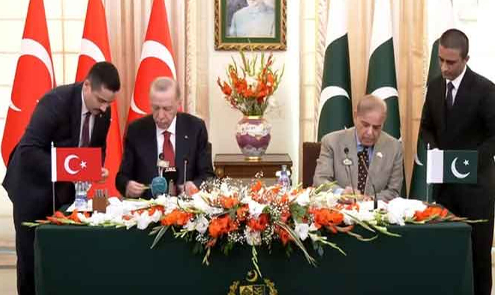 تقریب میں دونوں ممالک کے درمیان 24 معاہدوں اور مفاہمتی یادداشتوں پر دستخط کر دیئے گئے، دستخط وزیراعظم شہباز شریف اور ترک صدر نے کئے جس کے بعد دستاویزات کا تبادلہ بھی کیا گیا۔