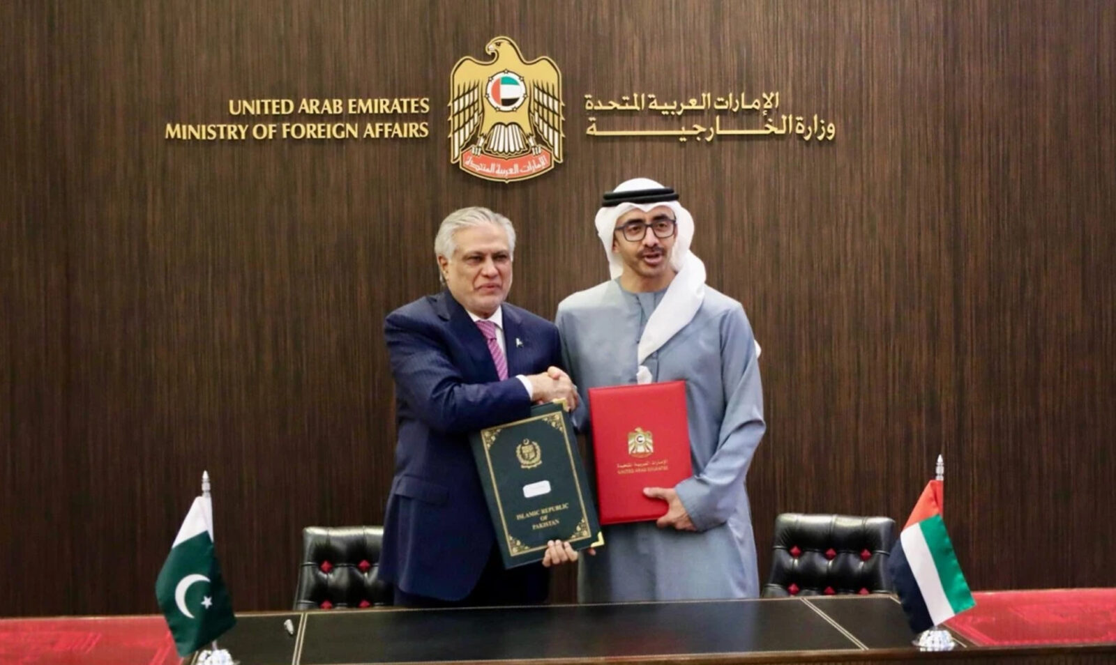 ابوظہبی: پاکستان اور متحدہ عرب امارات کے درمیان مشترکہ وزارتی کمیشن کا بارہواں اجلاس ابوظہبی میں منعقد ہوا، جس کی مشترکہ صدارت پاکستان کے نائب وزیراعظم محمد اسحاق ڈار اور یو اے ای کے نائب وزیراعظم شیخ عبداللہ بن زید النہیان نے کی۔