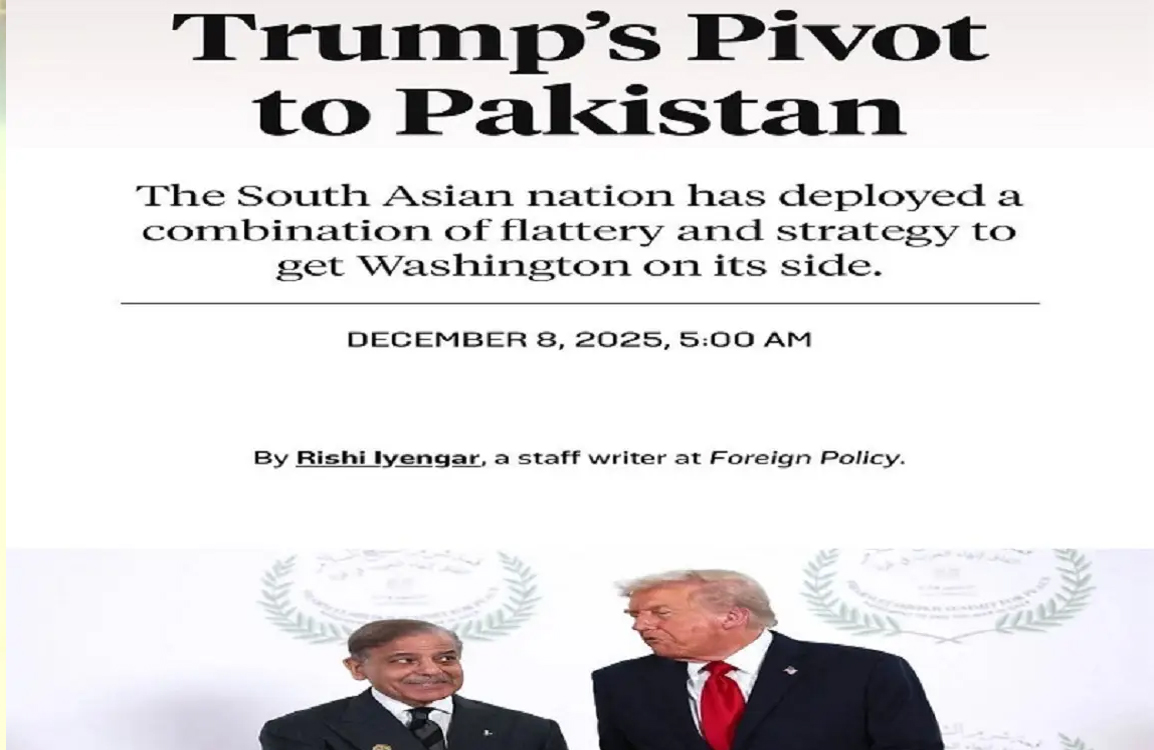فارن پالیسی نے رپورٹ میں مزید کہا کہ ٹرمپ حکومت پاکستان کے ساتھ کرپٹو، توانائی، انسداد دہشت گردی اور منرلز میں تعاون تیزی سے بڑھا رہی ہے۔ پاکستان نے قیادت، وژن اور سفارتی حکمت کے امتزاج سے واشنگٹن میں اپنی پوزیشن غیر معمولی طور پر مضبوط بنائی۔