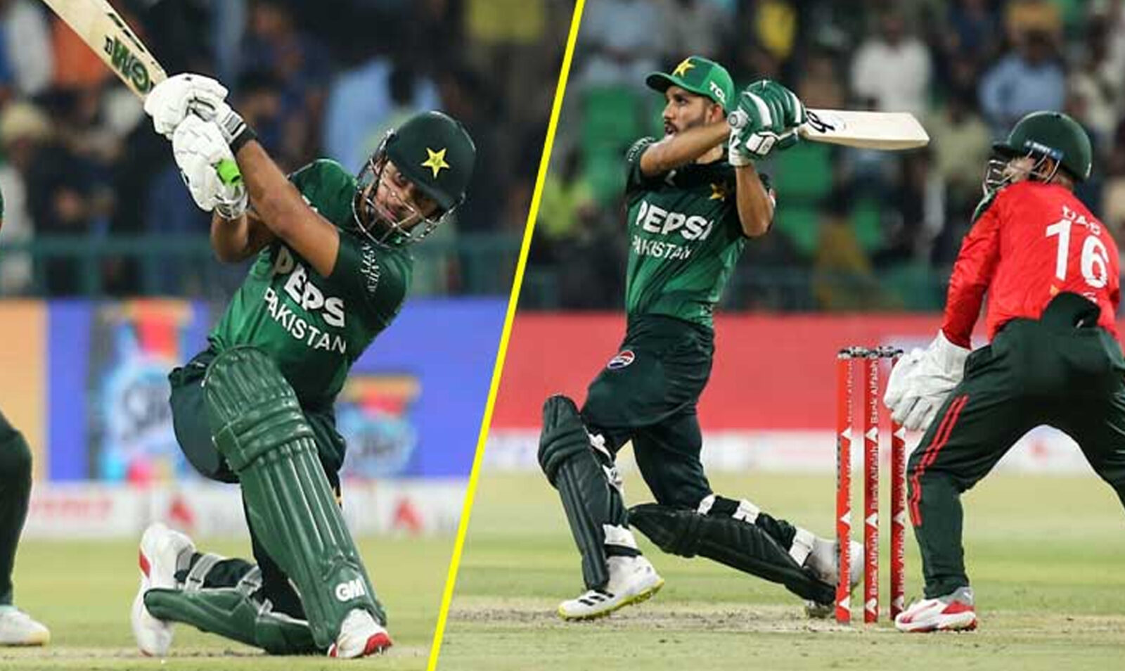 پاکستان کی جانب سے محمد حارث نے 46 گیندوں پر 107 رنز کی ناقابل شکست اننگ کھیلی، ان کی اننگ میں 7 چھکے اور 8 چوکے شامل تھے، صائم ایوب نے 45 ، حسن نواز نے 26 اور صاحبزادہ فرحان نے ایک رن سکور کیا جبکہ کپتان سلمان آغا 15 رنز بنا کر ناٹ آوٴٹ رہے۔