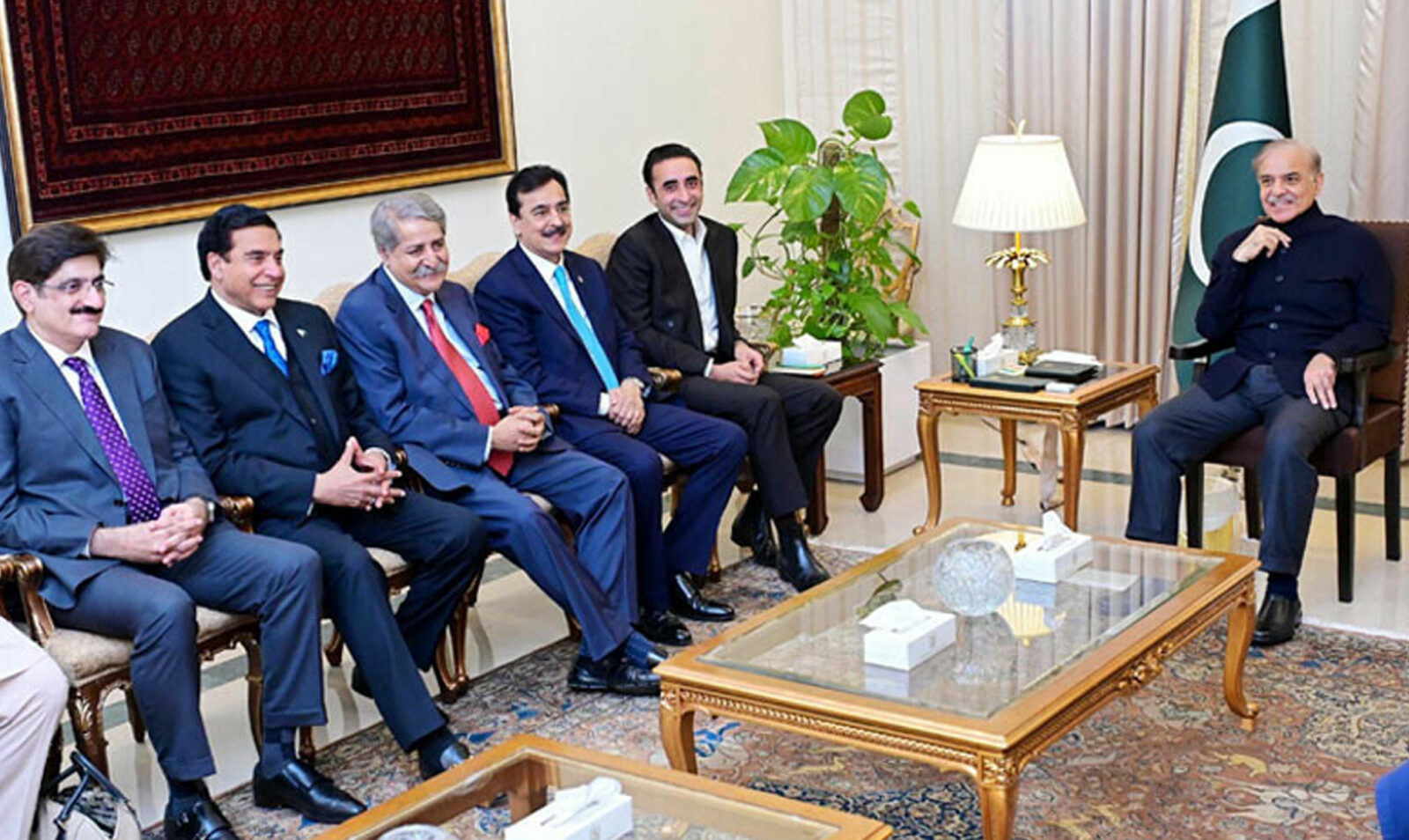 اسلام آباد:وزیراعظم شہباز شریف سے بلاول بھٹو زرداری کی قیادت میں پیپلز پارٹی کے وفد نے ملاقات کی۔