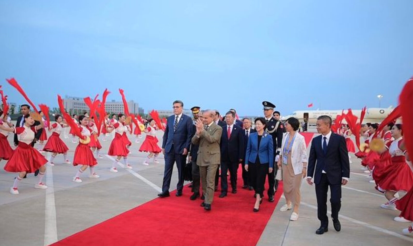 چین کے جنرل ایڈمنسٹریشن آف کسٹمز کی سی پی سی کمیٹی کی منسٹر اور سیکریٹری سن میجن(SUN MEIJUN) اور تیانجن میونسپل پیپلز کانگریس کی سٹینڈنگ کمیٹی کے چیئرمین اور پارٹی سیکریٹری یو یونلن (YU YUNLIN)، پاکستان میں چین کے سفیر جیانگ ذائیڈونگ اور چین میں پاکستان کے سفیر خلیل ہاشمی نے تیانجن ائیرپورٹ پر وزیراعظم کا استقبال کیا۔