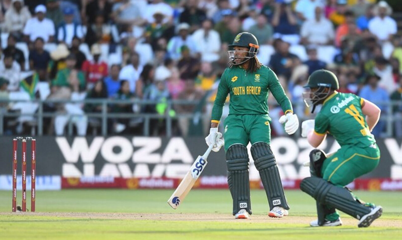 جنوبی افریقہ کی جانب سے کوئنٹن ڈی کوک نے 123 رنز کی ناقابل شکست اننگ کھیلی، ان کی اننگ میں 7 چھکے اور 8 چوکے شامل تھے ، ٹونی ڈی زورزی 76 اور لووان پریٹوریئس 46 رنز بنا کر آؤٹ ہوئے جبکہ میتھیو بریٹزے 17 رنز بنا کر ناٹ آؤٹ رہے۔