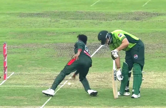 پاکستان کی جانب سے اننگز کا آغاز مایوس کن رہا، قومی ٹیم کے 3 ٹاپ آرڈر بیٹرز پاورر پلے میں 26 رنز کے مجموعی اسکور پر آؤٹ ہوئے، محمد رضوان 9، عثمان خان 3 اور فخر زمان 11 رنز بناکر پویلین لوٹے۔