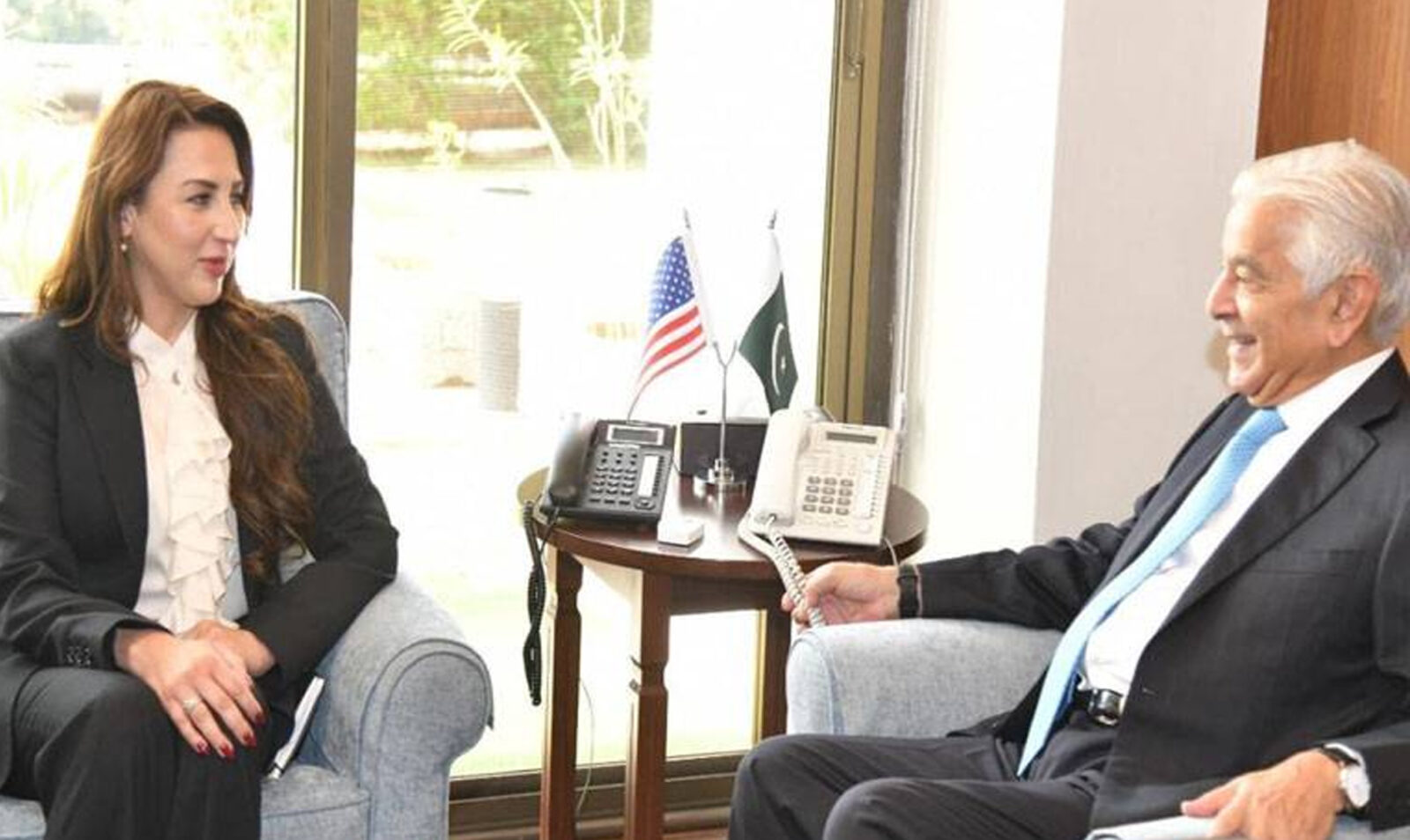 اسلام آباد:وزیر دفاع خواجہ محمد آصف سے امریکی سفارت خانے کی ناظم الامور نٹالی بیکر نے آج اسلام آباد میں ان کے دفتر میں ملاقات کی ۔جس میں باہمی دلچسپی کے امور اور دوطرفہ دفاعی تعاون کو مزید مضبوط بنانے کے طریقوں پر تفصیلی تبادلہ خیال کیا گیا۔